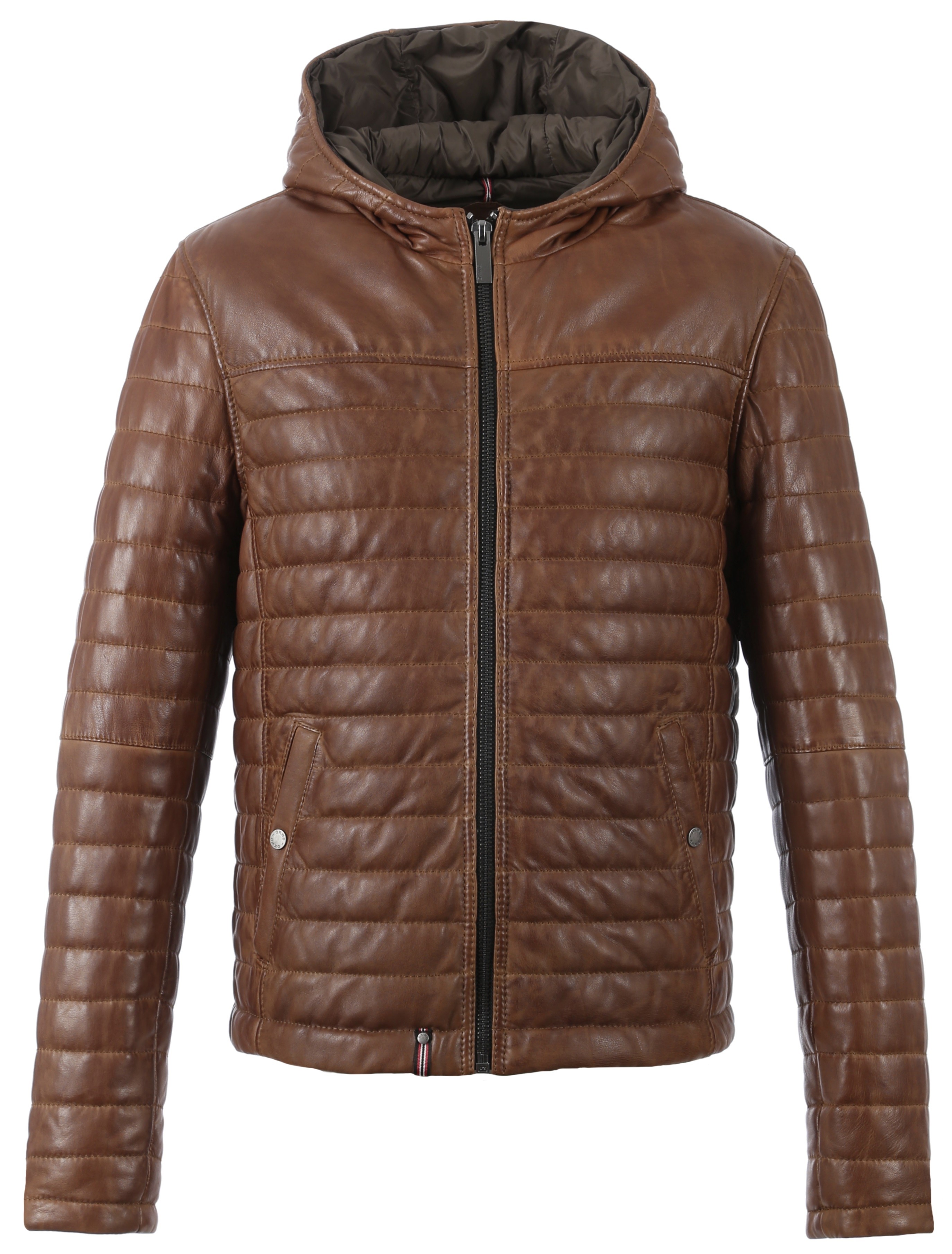 AURELIEN 3 (REF. 61120) COGNAC - TWO-TONE GENUINE LEATHER HOODED DOWN JACKET