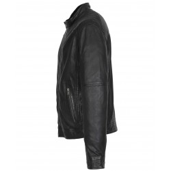 MANAGER (REF. 64395) BLACK - GENUINE LEATHER JACKET WITH MANDARIN COLLAR