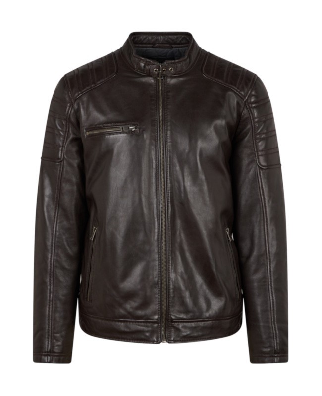 SHELBY (REF. 65178) BROWN - GENUINE LEATHER JACKET WITH MANDARIN COLLAR