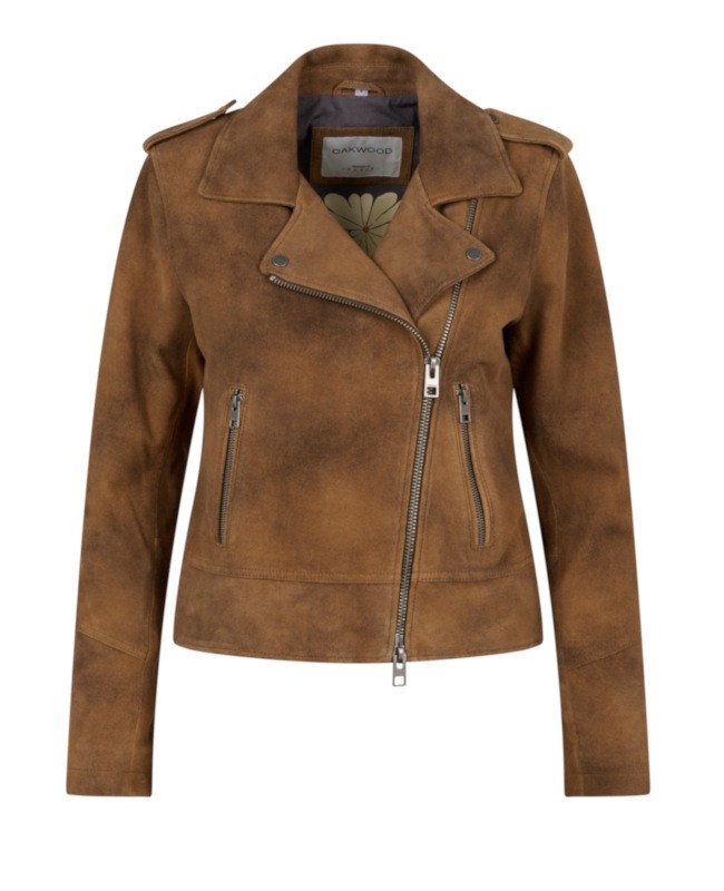 JOELLA (REF. 65043) TOBACCO - VESTE COURTE EN CUIR VERITABLE DE CHEVRE VELOURS
